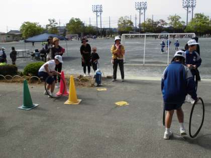 五月晴れの青空の下で、第61回児童福祉大会が本校グラウンドで行われました。この児童福祉大会は、5月5日から11日までの児童福祉週間にあわせて行われる行事の一つです。こうした行事を通して、次代を担う宝である子どもたちがたくましく成長できるよう家庭・地域・学校が連携することの大切さを改めて見直す機会となりました。早朝から浅井の3小学校の児童育成協議会の役員の皆様や子ども会の保護者の皆様が、子どもたちが楽しめるようにと器具などの準備をしていただきました。また、中学生のお兄さん・お姉さんがゲームの進行や得点係のボランティアを行い、運営を助けてくれました。子どもたちが多くの地域の方に人に見守られていることがよく分かる貴重な機会となりました。ありがとうございました。