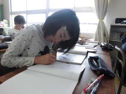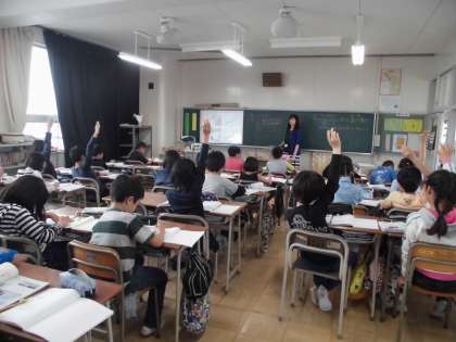 理科の時間です。雲の様子を見て、天気の予想をしていました。