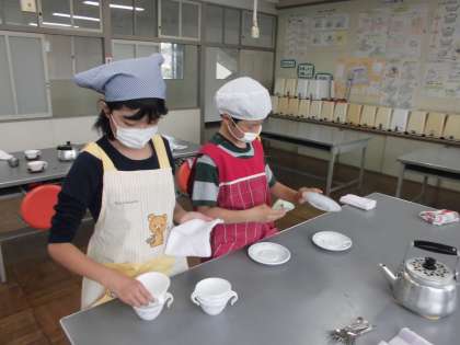 調理実習でお茶のいれました。初めてなので、みんな張り切っています!!