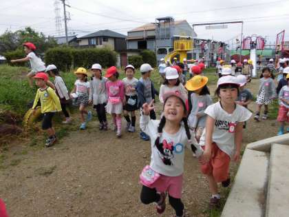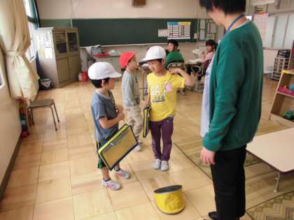 学校探検した後、中間放課にペアの子と一緒に遊びました。