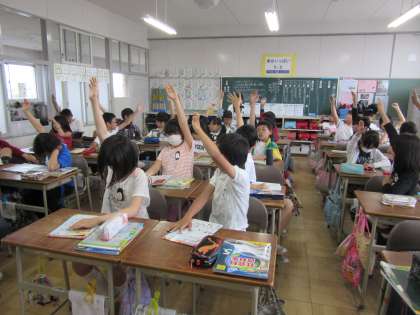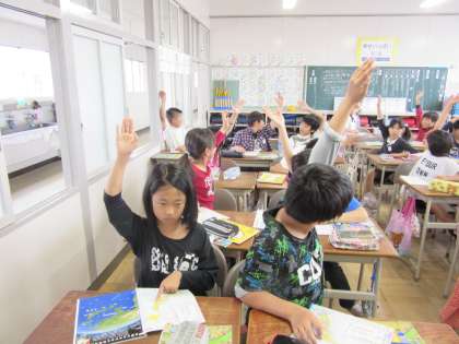 社会科の挙手の様子【5月9日(火)の5年生】 公開日 2017/05/10 更新日 2017/05/10 5年 社会科では、4年生の復習として都道府県を覚える活動をしています。とても意欲的に取り組み、たくさんの挙手が見られます。