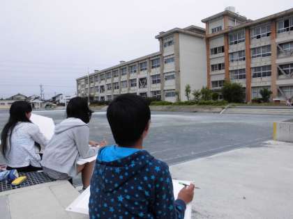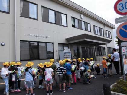 (上)3年生が町探検に出かけ、地図を使って地域の施設の位置などを確認しました。