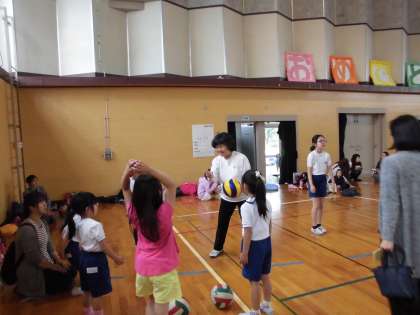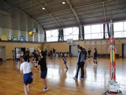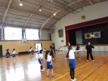 浅井町内の3小学校の子どもたちを対象にした小学生バレーボールの練習が本校で行われいます。今日は、今年度の開校式が行われ、40名を超える小学生が練習に参加していました。中小の児童だけではなく、南小・北小の子も一緒に練習をするので、新しい友だちもたくさんできるようです。コーチのみなさんも学年や経験年数に合わせてた練習内容を考えていてくれるため、どの子も楽しく練習に参加できていました。