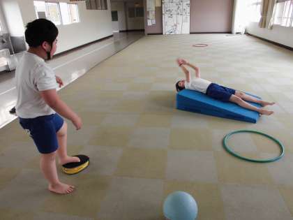 体育でトレーニング【5月17日(水)のたんぽぽ】 公開日 2017/05/17 更新日 2017/05/17 たんぽぽ 週に3時間の体育の時間を利用して、体のバランスを整えるためのトレーニングや左右対称に筋力をつけるためのトレーニングを少しずつ行っています。