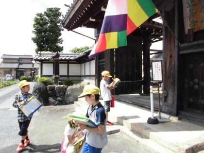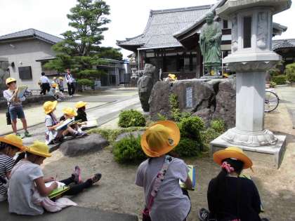 第2回町探検その1【5月16日(火)の3年生】 公開日 2017/05/16 更新日 2017/05/16 3年 今日は学校から西の方を通り、運善寺、大日比野神社に行きました。神社ではその場所ならではの物を見つけ、絵と文でカードにまとめました。「この道初めて通った」などとつぶやく子もおり、自分たちの地域をより深く知るよい機会になったと思います。