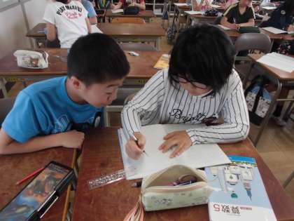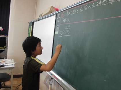 隣の子とペアで、少数の筆算の仕方を確かめながら問題を解きました。