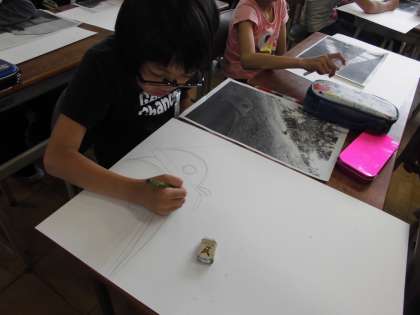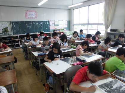 写生大会の絵を描きはじめました。自分の描きたい場所を選び、どの方向から描くのかしっかりと考えました。どんな絵が描きあがるのか楽しみだね!!