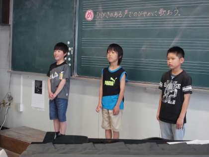 歌のテスト【5月18日(木)の5年生】 公開日 2017/05/18 更新日 2017/05/18 5年 前回に引き続き、歌のテストをしていました。緊張していましたが、最後までしっかりと歌い遂げていました。