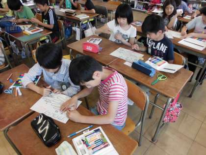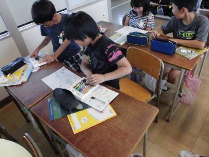 エコスクール運動始動!【5月19日(金)の4年生】 公開日 2017/05/19 更新日 2017/05/19 4年 4年生の総合学習の時間には「環境」を行います。全校でエコ活動を行うために4年生が中心となり「エコスクール運動」をおこなっていきます。今日から活動スタート!ごみ班と電気・水班に分かれて活動をし、ごみ班ではリサイクルバックづくりを進めました!