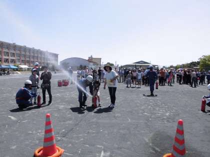 浅井町連区防災訓練 その2【6月4日(日)】 公開日 2017/06/04 更新日 2017/06/04 校長室より スモークハウス体験、初期消火訓練、炊き出し訓練の様子です。小学生も参加していて、消火器の使い方や消火のやり方を練習しました。炊き出し訓練では、中学生ボランティアが活躍していました。