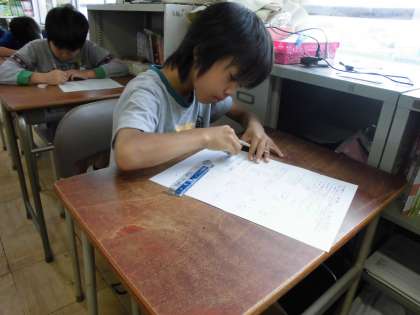 算数テスト、頑張りました。計算ミスをしないように、見直しまで頑張りました。
