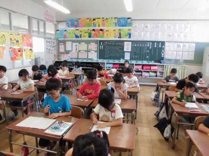 水はどこから 【6月9日(金)の4年生】 公開日 2017/06/09 更新日 2017/06/09 4年 社会科では、私たちが普段使っている水について勉強しています。一宮市では最近水の使用量が減ってきている理由を考えて発表しました。