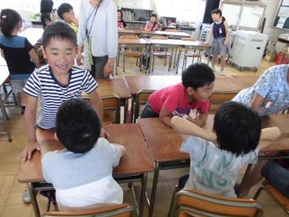 1時間目はピアサポートの授業です。「あいさつ上手になろう」を目標に、友達とあいさつの練習をしました。