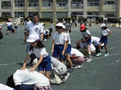 学校公開日 その2【6月10日(土)の4年生】 公開日 2017/06/10 更新日 2017/06/10 4年 2時間目は、「親子ボール送り、馬とびリレー」でした。親子で息もぴったり!協力してがんばりました。