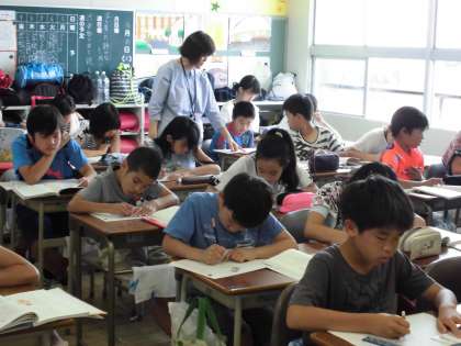 着衣泳のあとは、授業もしっかりがんばる6年生です。