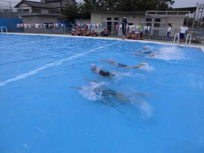 検定を行いました 【6月27日(火)の3年生】 公開日 2017/06/27 更新日 2017/06/27 3年 今日のプールでは、検定を行いました。中には、100mを泳ぎ切る子もいました。みんなが拍手で称えていました。