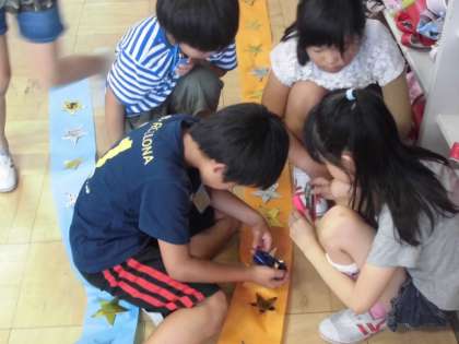 七夕に向けて・・・【7月4日(火)の4年生】 公開日 2017/07/04 更新日 2017/07/04 4年 七夕に向けて、飾りを準備しました。金と銀の星に自分の願い事を書きました!願い事かなうといいね!