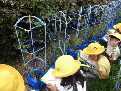ミニトマトの実を観察しました。赤くなっている実、緑の実、まだ小さな実がいっぱいなっていました。学年園にも、キュウリやピーマン、エダマメ、ミニトマトがなり、収穫できました。子供たちが持ち帰って家で食べています。今度は、自分が持ち帰りたいと心待ちにしています。