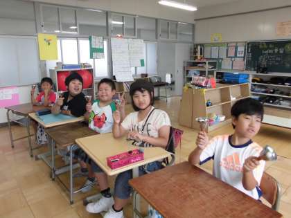 ハンドベル【7月6日(木)のたんぽぽ】 公開日 2017/07/06 更新日 2017/07/06 たんぽぽ たんぽぽ学級合同でハンドベルの練習をしています。ゆっくりですが、きれいな響く音を出しながら少しずつ練習を続けています。 給食の後は、みんなで一緒に読書タイムです。