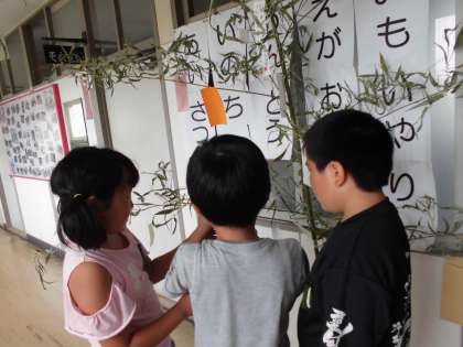 七夕は、日本や中国の複数の伝説や風習が重なり、現在の形になっています。笹に願い事を書いた短冊を下げて飾る七夕飾りは、江戸時代に寺子屋で学んでいた寺子たちの習字が上達するようにと短冊に書いたことが始まりと言われています。日本の古来から伝わる伝統行事に、子どもたちが意欲的に取り組んでくれたことをうれしく思います。