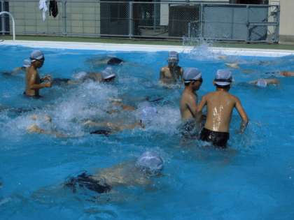 久しぶりに低学年プールで宝探しをしました。小さな宝を集めるために、みんながんばって何度も潜っていました。結構盛り上がりました。十分水慣れができたので、25mを何本も泳ぎました。さすがに疲れたようで、その後の授業は、いつもにないくらい静かでした。