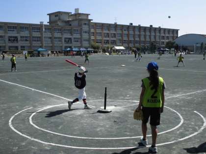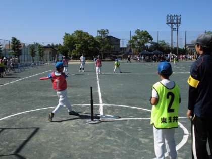 子ども会スポーツ大会 その2 【7月8日(土)の浅井中小】 公開日 2017/07/08 更新日 2017/07/08 校長室より ティーボールの様子です。なかなうまく当たらず、ボールが前に飛ばない子もいました。大日比野チームは、2人続いてホームランを打っていました。