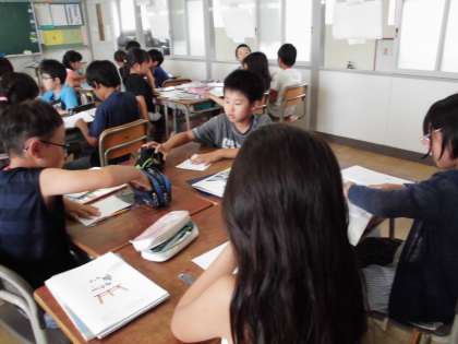新聞作り 【7月11日(火)の4年生】 公開日 2017/07/11 更新日 2017/07/11 4年 4年生の国語では、新聞作りを通して、文章を書いたり、友だちにインタビューしたりする活動を行っています。新聞の題名、記事の配列の仕方、どんな記事を載せるかを友だちと話し合いながら決めています。