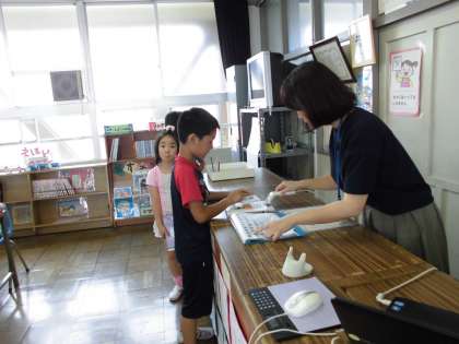 夏休み前になり、各学級で図書館を利用して本の貸し出しを行っています。一人2冊まで借りることができるので、新刊を中心に人気のある本はすぐに貸し出されてしまいます。今年度は特に人気があるシリーズは各クラス何冊まで、と決められているので、話し合いをして誰が借りるかを決めているクラスもありました。夏休みには、図書館の本をはじめ、たくさんの本を読んでほしいと思います。
