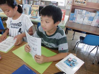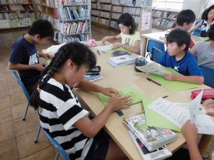 キャンプのしおり【7月12日(水)の5年生】 公開日 2017/07/12 更新日 2017/07/12 5年 図書館で夏休みの本を借りた後、キャンプのしおりを作りました。 みんなキャンプを楽しみにしているので、しっかりとしおりを読んでいました。