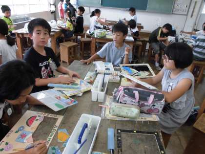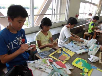 図工のパズルが完成しました。自分の作ったパズルで遊んでいる子もいました。