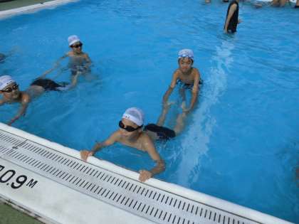 プールの時間です。今日はとても暑く、プールに入るのが気持ちよかったです。