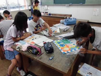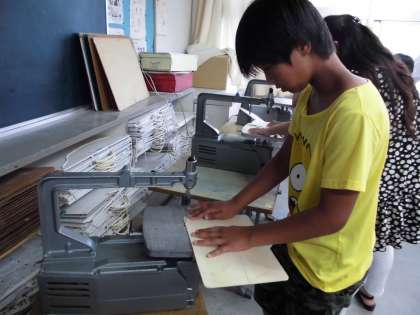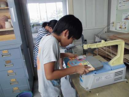 パズルを完成させよう 【7月14日(金)の5年生】 公開日 2017/07/14 更新日 2017/07/14 5年 絵を完成させる人は色塗りを丁寧に行いました。糸のこを使ってパズルのピースを切っていく人は、ずれないように気をつけながら、集中して作業することができました。