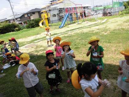 シャボン玉飛んだ 【7月19日(水)の1年生】 公開日 2017/07/19 更新日 2017/07/19 1年 今日はシャボン玉を飛ばしました。優しくストローを吹かないとすぐに壊れてしまいます。中には、大きなシャボン玉を作って飛ばす人もいました。
