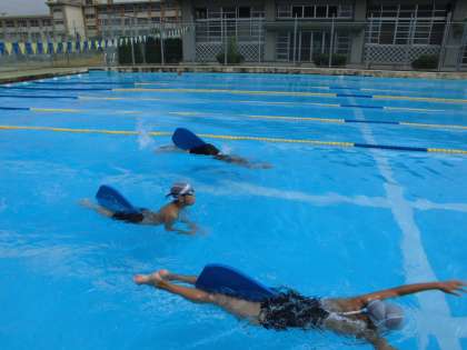 水泳部の活動 【7月24日(月)の浅井中小】 公開日 2017/07/24 更新日 2017/07/24 学校生活 27日の水泳選手権大会に向けて、水泳部の練習が行われていました。中学校の水泳部と一緒に泳ぐので、かなりの距離を泳いでいました。しっかり体力もつけて、大会当日頑張ってください。