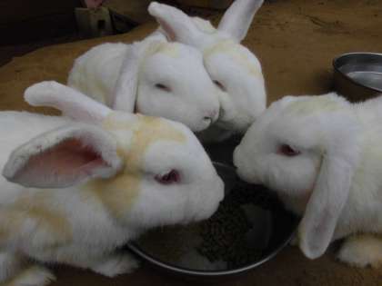 湿度が高く暑い日が続きますが、ウサギたちは元気です。えさをあげるといっせいに駆け寄ってきて、あっという間に完食。そのあと、水もいっぱい飲みました。ウサギたちものどが渇いているのですね。