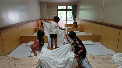 野外教育活動 その22【7月31日(月)の5年生】 公開日 2017/07/31 更新日 2017/07/31 5年 おはようございます!全員元気な様子です。起きてすぐに洗面とベッドの整頓をしています。