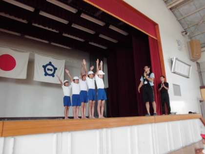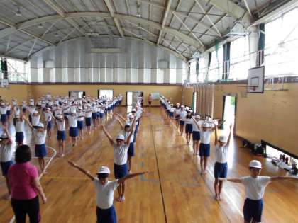 運動会の練習 【9月5日(火)の6年生】 公開日 2017/09/05 更新日 2017/09/05 6年 今日から組立体操の練習が始まりましたが、6年生が技の手本を見せ、5年生にやり方を示しています。全体練習でも「さすが」と思えるほど、きれいに技を披露できる人が多くいて、5年生のよき手本となっています。