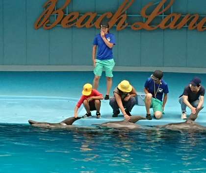 宿泊学習 【9月7日(木)のたんぽぽ】 公開日 2017/09/07 更新日 2017/09/07 たんぽぽ アシカショーやイルカショーを見ました。代表で イルカを触った子が「硬くてザラザラしていた」と感想を言っていました。