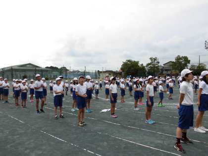 運動会全体練習 【9月11日(月)】 公開日 2017/09/11 更新日 2017/09/11 学校生活 今日の全体練習は、応援と校歌の練習を行いました。運動会の最後を飾る素晴らしい歌にしようと、先生から呼びかけがありました。月曜日の朝のせいか、なかなか声が出ませんでしたが、何度も歌うことで大きな声が出てくるようになってきました。