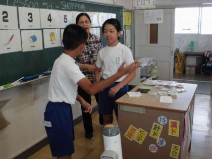 英語でお買い物【9月13日(水)の6年生】 公開日 2017/09/14 更新日 2017/09/14 6年 お店屋さんとお客さんになって、買い物をしました。自分の欲しいものを英語で伝えることができました。