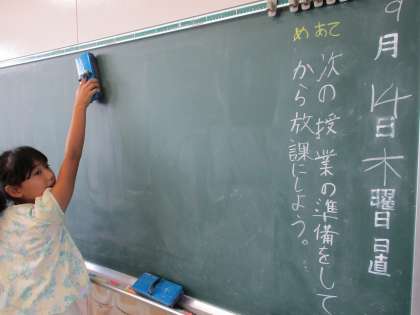 めあてを考えて実行する姿【9月14日(木)の5年生】 公開日 2017/09/14 更新日 2017/09/14 5年 5年生では、めあてをその日の日直がつくって、みんなで心がけています。今日は、次の授業の準備をしておく内容でした。 その目標を実行しようとする姿が、多く見られました。写真では、机の上に次の授業の教科書を置いて、休み時間に入っています。運動会の練習で忙しい中でも、こうした日常生活を整えようとすることは、すばらしいです