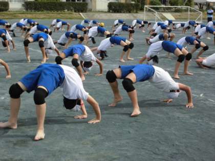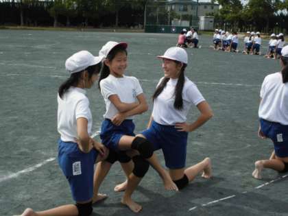 完成間近です。【9月15日(金)の6年生】 公開日 2017/09/17 更新日 2017/09/17 6年 今日はじめて運動場で組み立ての練習をしました。一人技からダンスまで、位置を間違えることなく、上手にできていました。