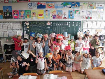 海の生き物の帽子をかぶったよ【9月20日(水)の2年生】