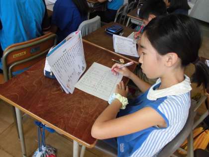 漢字の学習です。復習として確認小テストをしました。