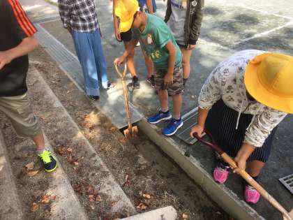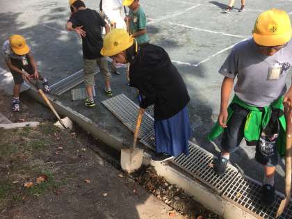 側溝そうじをがんばっています。