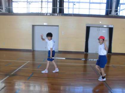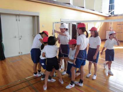 体育ではソフトバレーボールをしています。ネットの準備もみんなで協力してやりました。