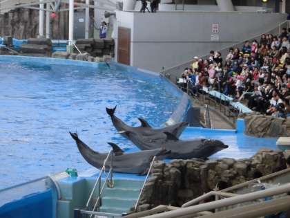 イルカのジャンプすごいね 【10月19日(木)1年生】 公開日 2017/10/19 更新日 2017/10/19 1年 イルカの大ジャンプを見て、子どもたちは大喜び。「イルカになりたいなあ。」とつぶやいている子もいました。本当にイルカはかしこい生き物ですね。