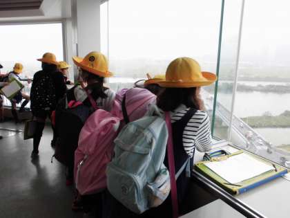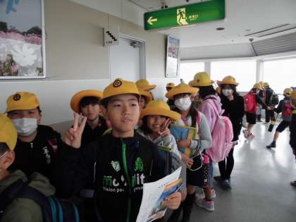 タワーの眺めはあいにくでしたが、雨にも負けず、見学しました(その2) 公開日 2017/10/19 更新日 2017/10/19 4年 帰りのエレベーターを待っています。また、晴れた日にものぼりたいですね。