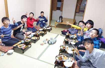 部屋で仲良く夕食を食べました。