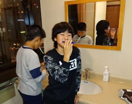 修学旅行速報【10月23日(月)の6年生】 公開日 2017/10/23 更新日 2017/10/23 6年 就寝準備です。出発が遅れたため、予定された見学地の変更を余儀なくされましたが、全員が楽しく過ごすことができました。明日は、天候にも恵まれるといいですね。おやすみなさい。